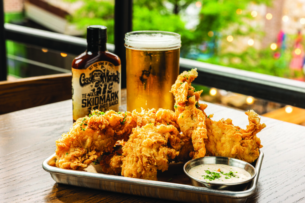 The lunch and dinner menu at Gas Monkey Icehouse is simple, yet elevated bar-style grub. For starters, try some of the beer-battered chicken tenders. These crunchy, juicy strips of chicken breast are coated with a Garage Beer batter, which comes out of the fryer with a great crunch while remaining nice and juicy. They are served with some house-made ranch and some of their signature comeback sauce (more on that in a minute).