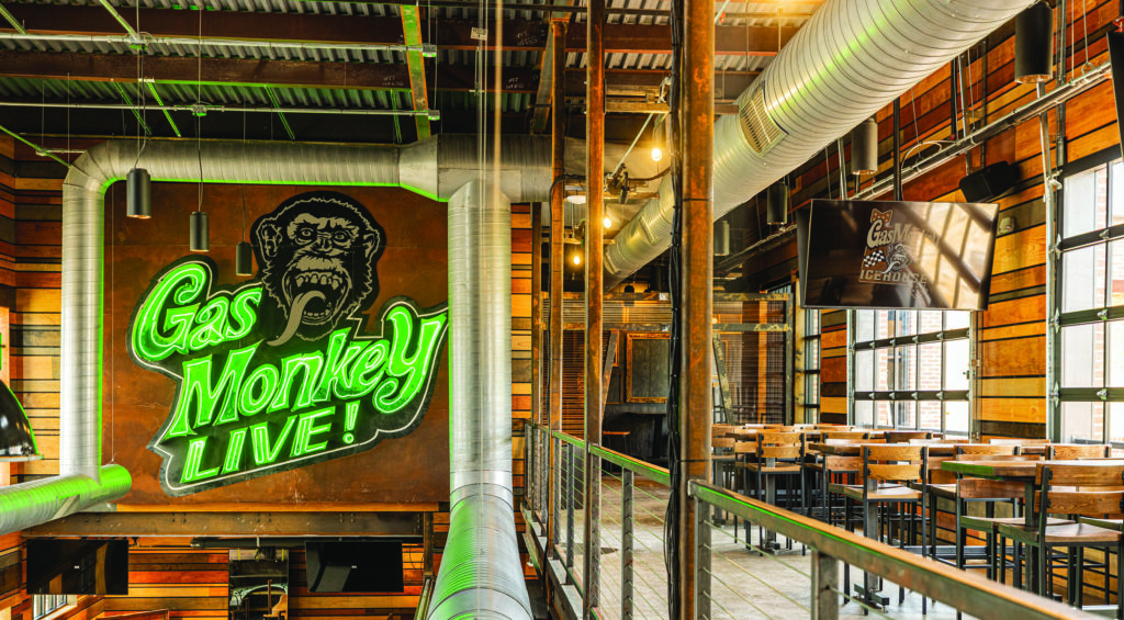 The party begins once you enter the doors at Gas Monkey. As you hit the throttle on your evening out, you are met with a friendly face at the door waiting to seat you and your party in one of multiple areas that are all buzzing with activity. Two downstairs bars have plenty of seating, if you are flying solo or just want to belly up with your buds after a warm afternoon on the golf course. If it’s available and you are with several friends, ask for the “big green table,” which sits at the center of the action on the bottom floor. It’s a great place to take in a game or enjoy your dinner with friends, family or co-workers. There are plenty of TVs to take in your favorite sport or team, which means this will be the place to be on a Saturday or Sunday when football rolls back around, or during the summer months as the Rangers enter the dog days.