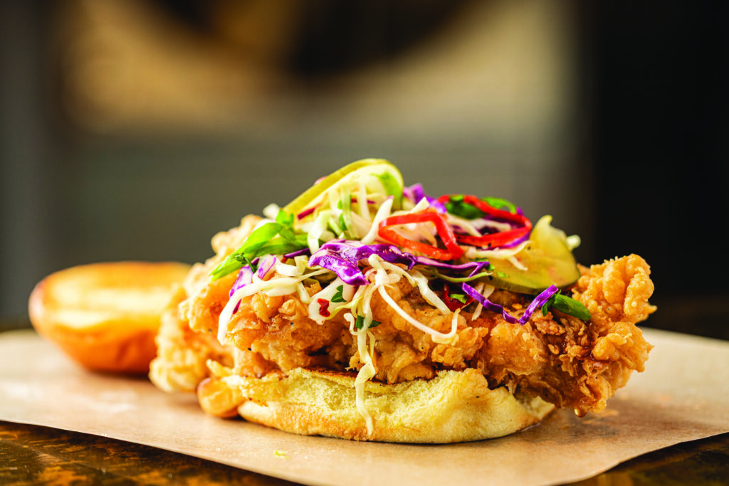 Another great sandwich on the menu is the Hot Honey Crispy Chicken Sandwich. If you are a fan of the chicken sando, then this one will knock your socks off. The chicken comes out crunchy without being too oily, and the cool slaw on top really takes things up a notch. A little spicy aioli adds a creamy note, and the pickle chips add a salty vibe. If you are looking for a pro tip, take some of the burnout sauce from the table, add just a little drizzle to make this more of a buffalo-style sandwich. No matter how you choose to eat it, you’re going to love it. Pair it with some delicious sweet potato fries as the perfect accompaniment.