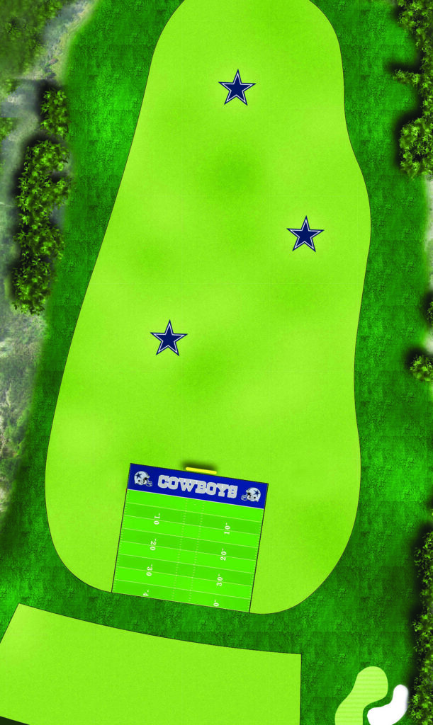 “As we began to think about each year and raising the bar, we wanted to do some things that are dynamic and different,” Walker said. “So in addition to the course work, we bought the Cowboys field and we’re bringing in the goal posts, we’re doing some gamification with the Toptracer technology, and with all that we brought in Beau Welling to work on the Cowboys-themed synthetic putting course. With all those projects about to begin, we decided that we have greens that need work due to their age and the soil composition, and we’ve lost a lot of pin placements due to loss of square footage on the greens, so let’s just do the greens, the bunkers, the tees and the cart paths and let’s work on trees. While this is a business interruption, which we hate to see, it’s part of our commitment to giving golfers the best experience possible, so we decided on a total transformation.”