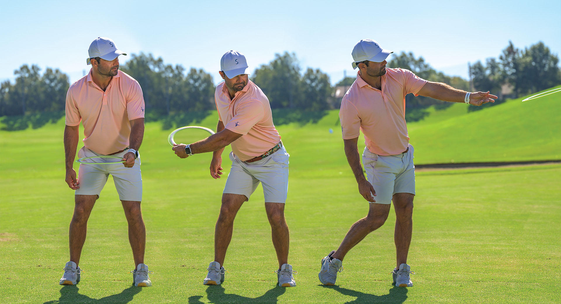 Combining these two drills – a football throw with trail hand and a frisbee throw with lead hand – creates a balanced, symmetrical training routine that refines both sides of your swing: